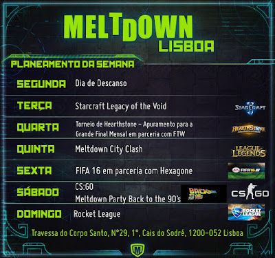 - Sábado– CS:GO e ainda a Meltdown Party Back to the 90’s;